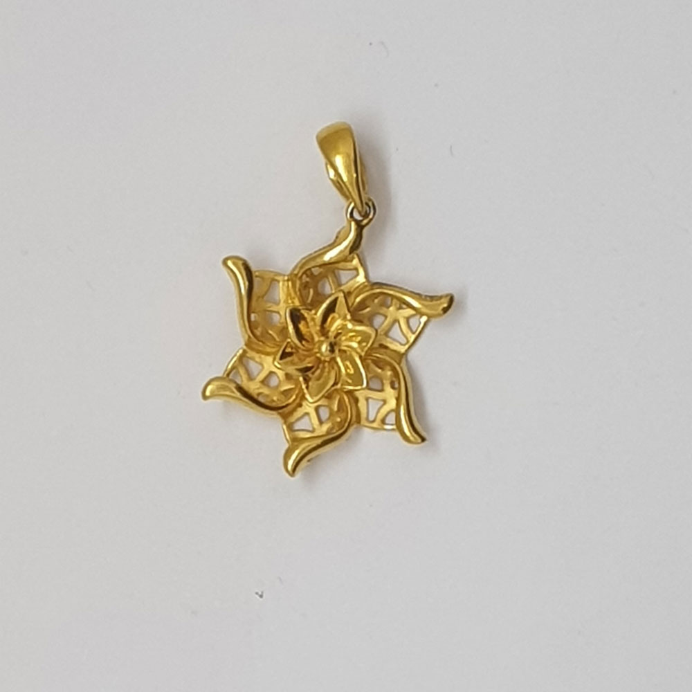 CLASSIC STYLE FLOWER WITH HEART GOLD PENDANT .