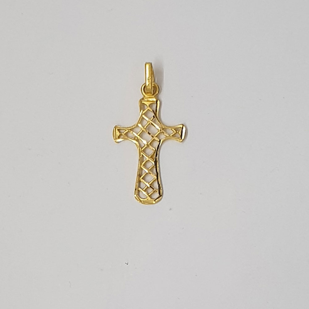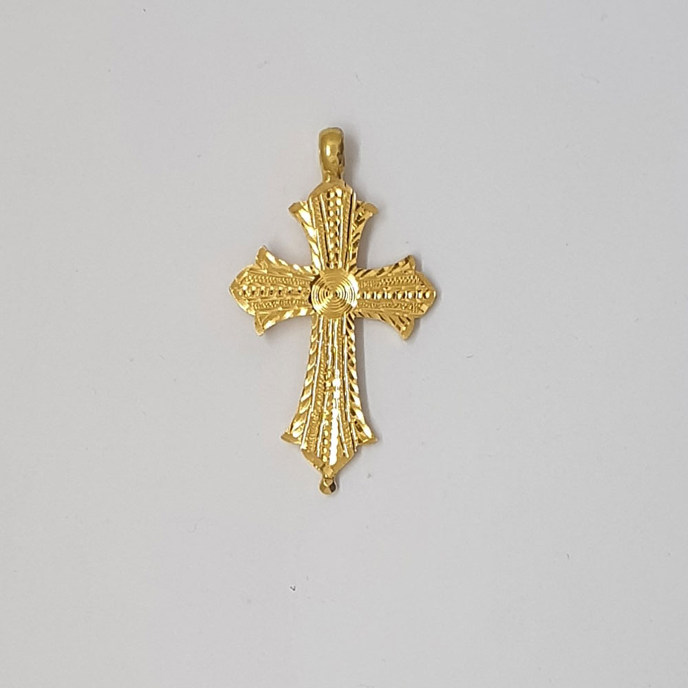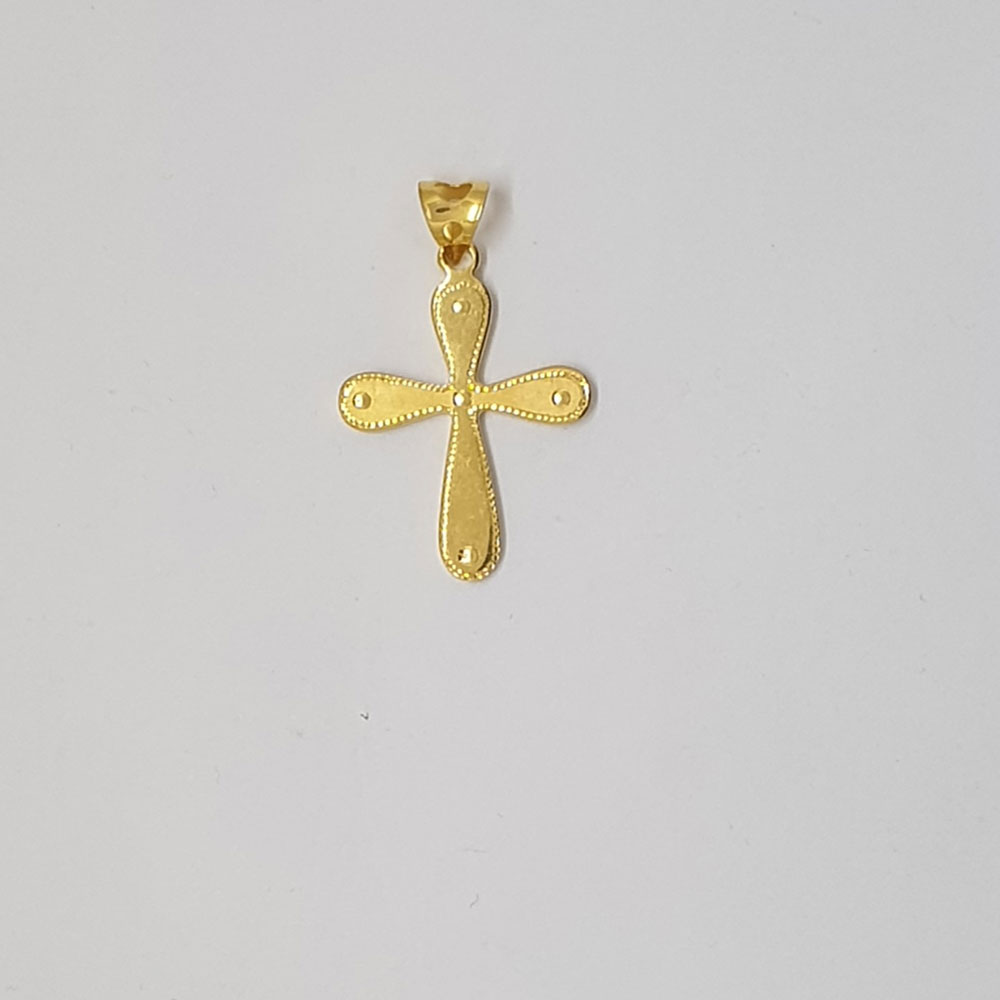 GOLD CROSS PENDANT WITH HIGH POLISH MAT FINISH .