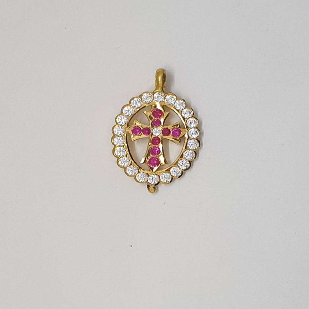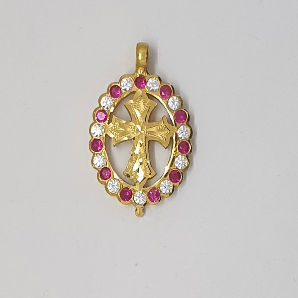 TRADITIONAL CROSS PENDANT WITH RED & WHITE STONE .