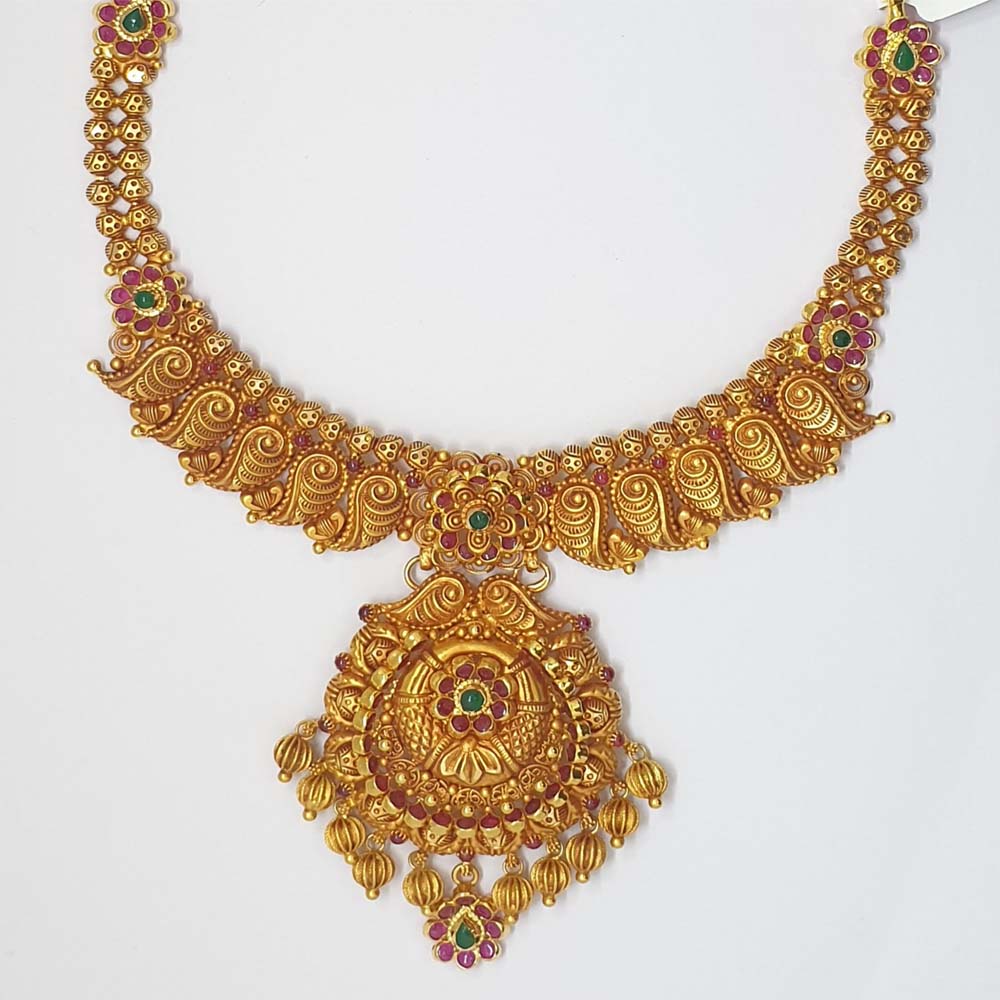MANGO NECKLACE WITH LAKSHMI PENDANT.