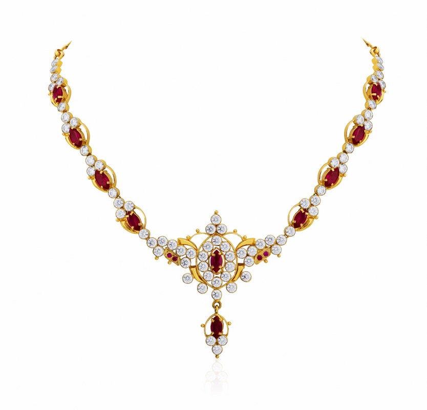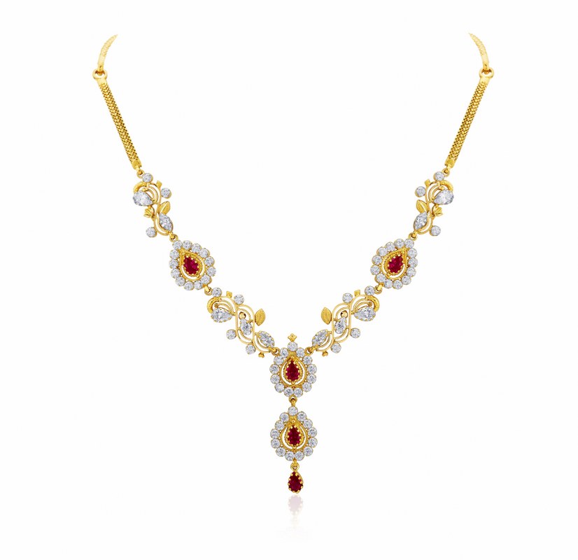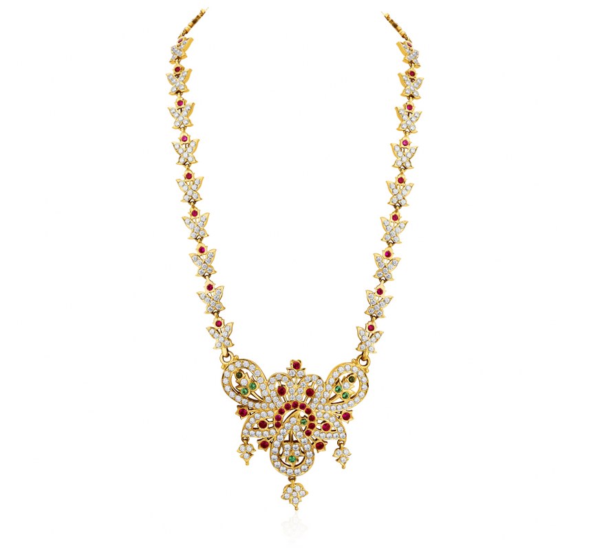 FANCY EMRALD CZ WHITE STONE DESIGN NECKLACE