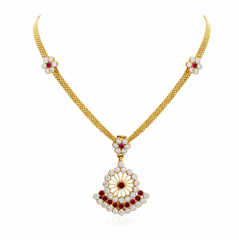 FLAT GOLD CHAIN WITH PADGAM WITH STONE